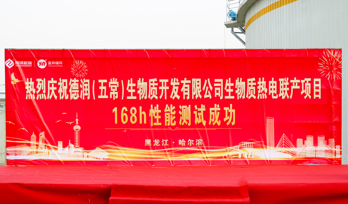 2023年4月9日,由華潤集團德潤生物質開發(香港)有限公司(以下簡稱“德潤公司”)全資,北京盈和瑞環境科技有限公司承建,中國農業大學生物質工程中心提供技術支持的黑龍江省五常市拉林鎮8×1兆瓦生物質熱電聯產項目一期(日產沼氣4萬立方米),按照電力行業高標準,圓滿完成了全系統、滿負荷連續168小時的性能測試,成為全球首個以純干秸稈制沼氣的高產氣率、達產穩產的項目,為全球干秸稈制沼氣和生物天然氣產業樹立了行業標桿。