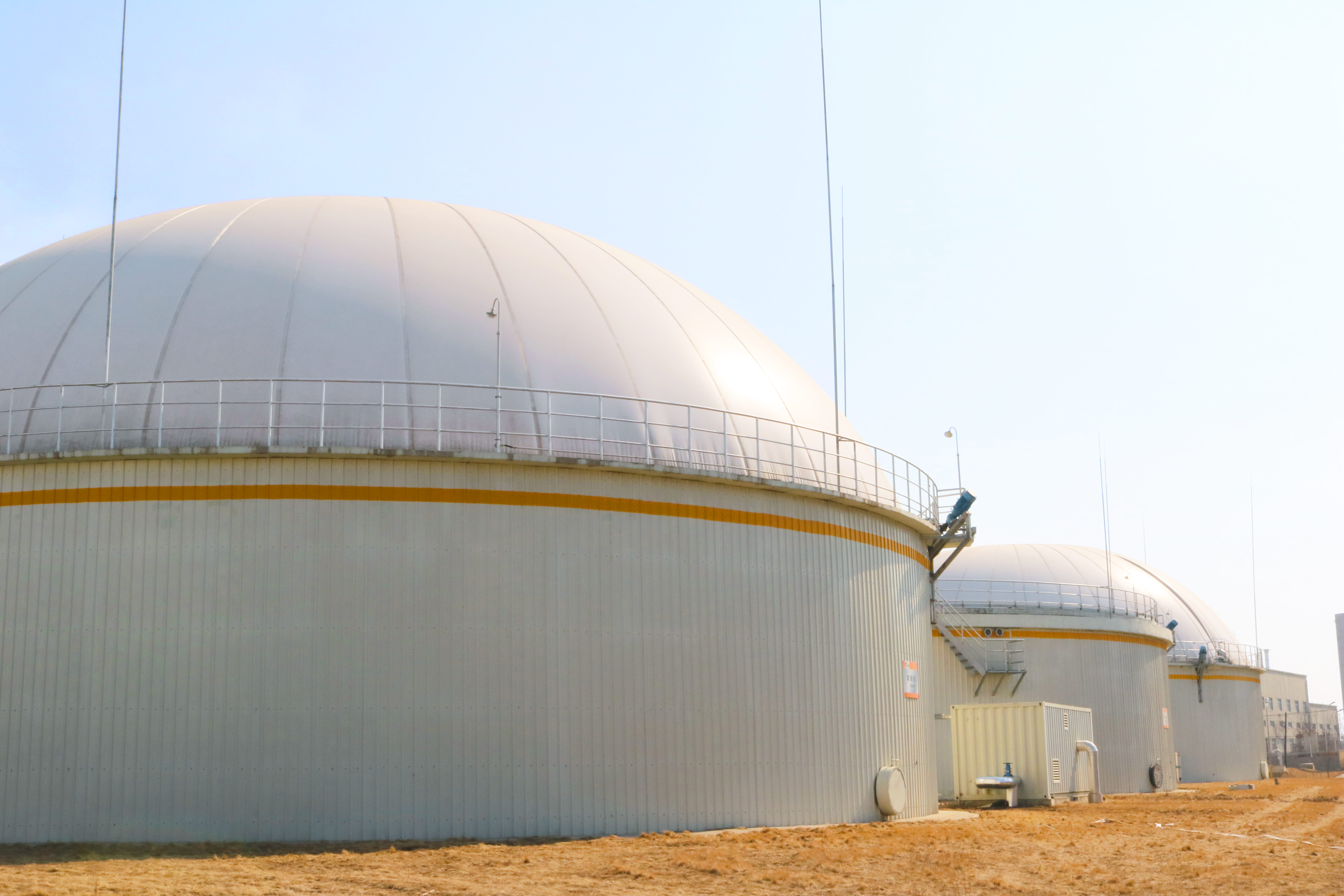 厭氧發酵單元是在引進德國厭氧發酵技術上,結合國內干秸稈特點進行了具有開創性的創新改進提升。五常拉林項目一期建設了4個一級厭氧發酵罐和2個二級厭氧發酵罐,單體有效罐容5100m3,針對核心攪拌系統、進出料系統進行了國產化工藝優化和設備改造。創新的厭氧發酵工藝發酵濃度高、溫度高,對工況復雜的纖維類生物質原料兼容性好,對發酵濃度變化適應性強,具有較高的生產效率。同時,五常拉林項目一期高效厭氧發酵單元經歷了零下30℃極寒條件的多年考驗,驗證了五常拉林項目高效厭氧發酵技術的成熟可靠性。