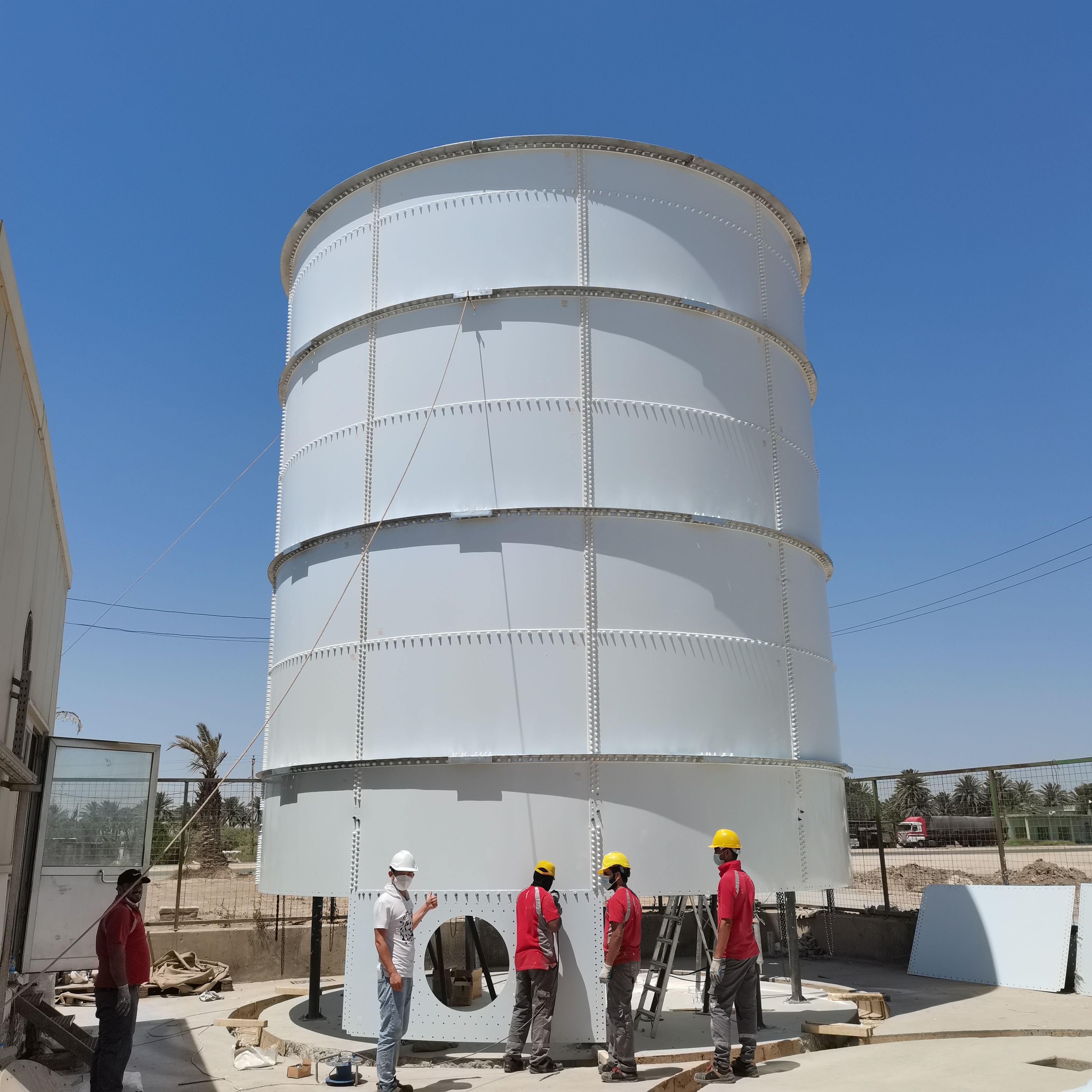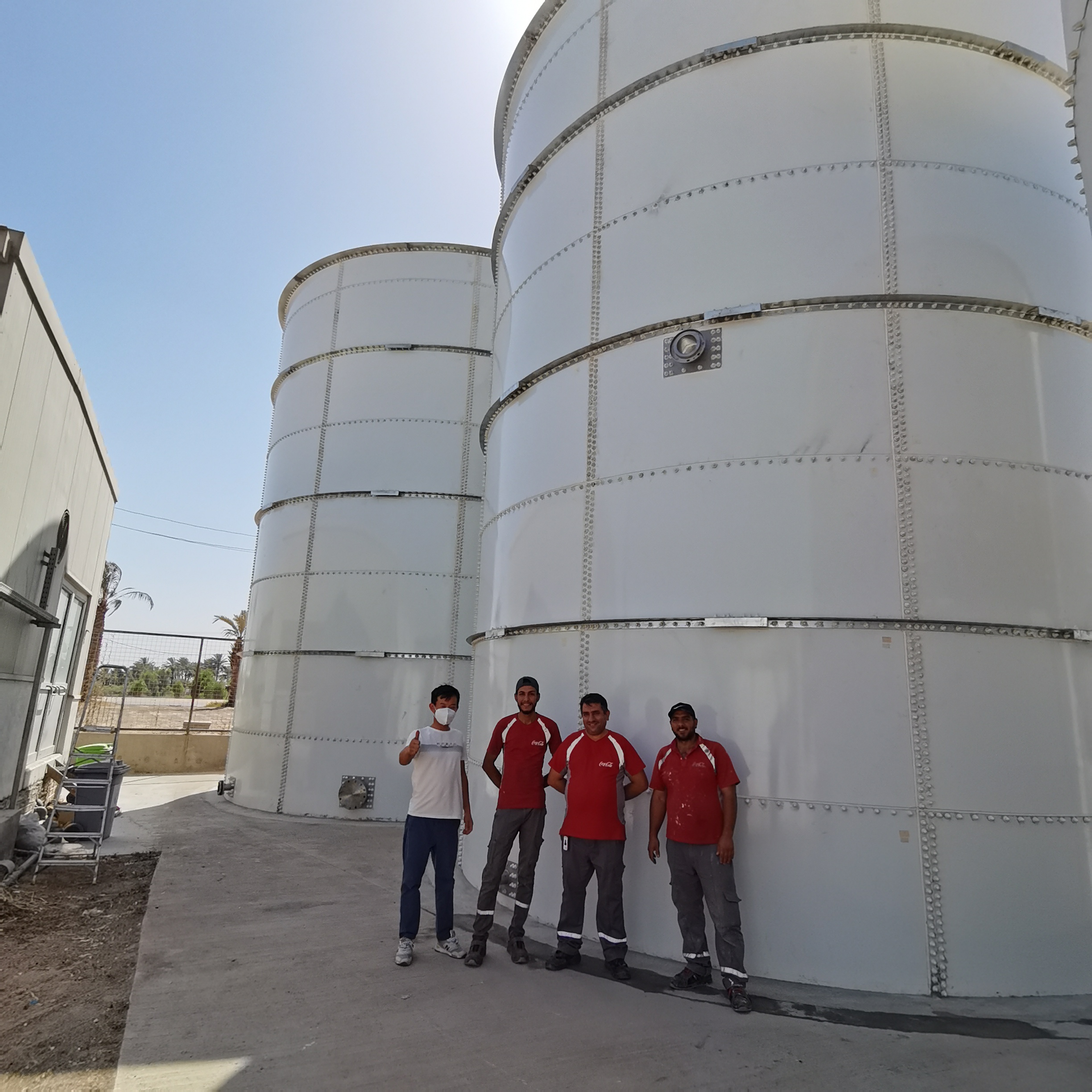 2021年8月,盈和瑞環境向可口可樂飲料(伊拉克)集團完成兩座飲用水搪瓷拼裝罐,均為白色罐體(RAL 9016交通白),搪瓷頂蓋結構,為可口可樂廠區生產擴建工程的一部分。盈和瑞環境過硬的產品質量和快速、安全的安裝方式贏得了海外眾多業主的高度肯定及認可。